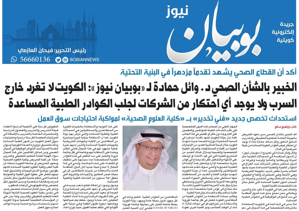 الخبير بالشأن الصحي د. وائل حمادة لـ بوبيان_نيوز : الكويت لا تغرد خارج السرب ولا يوجد احتكار من الشركات لجلب الكوادر الطبية المساعدة