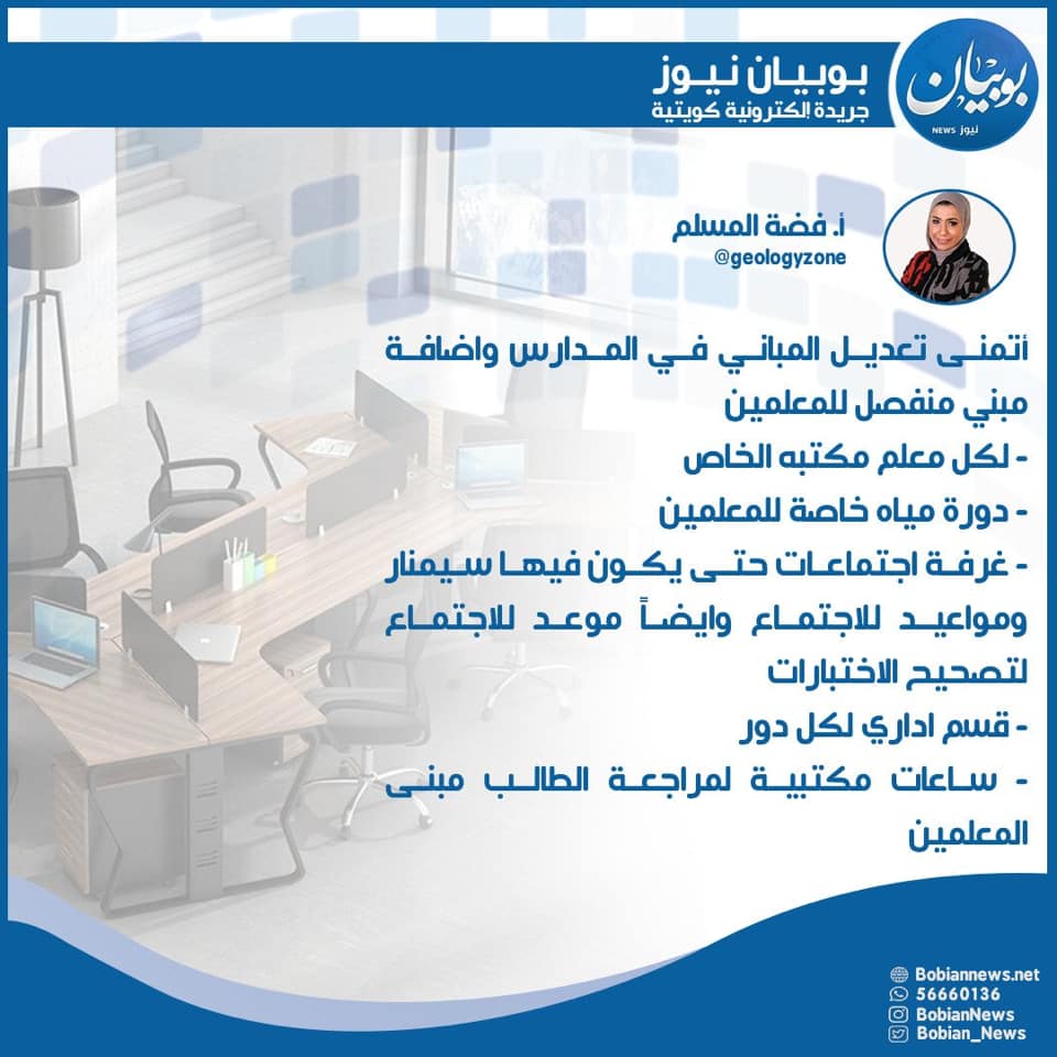 أتمنى تعديل المباني في المدارس واضافة مبني منفصل للمعلمين