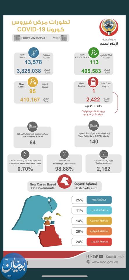 إصابات «كورونا» تتراجع إلى أقل من 100… ونسبة الحالات للمسحات تسجل انخفاضاً قياسياً