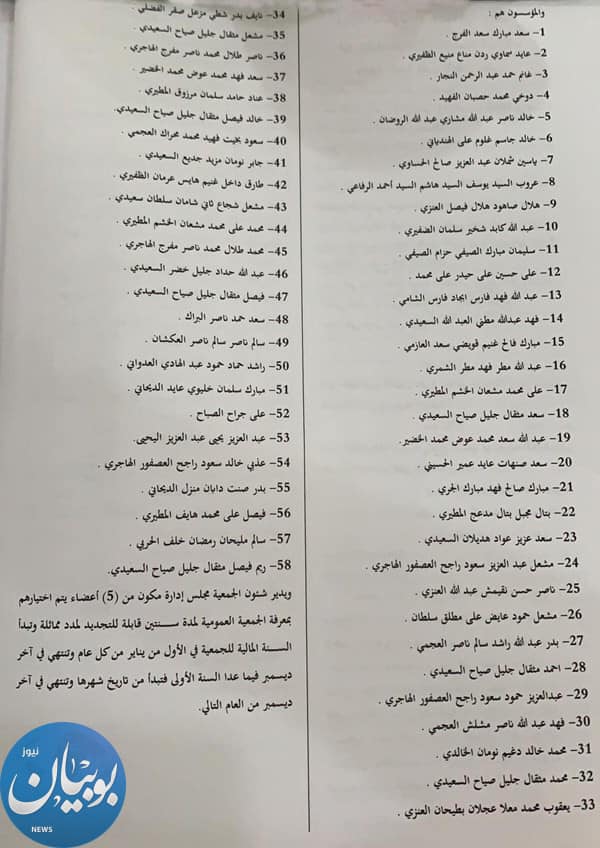 المؤسسون 50 شخصا و5 أعضاء لمجلس الإدارة يتم اختيارهم بمعرفة الجمعية العمومية