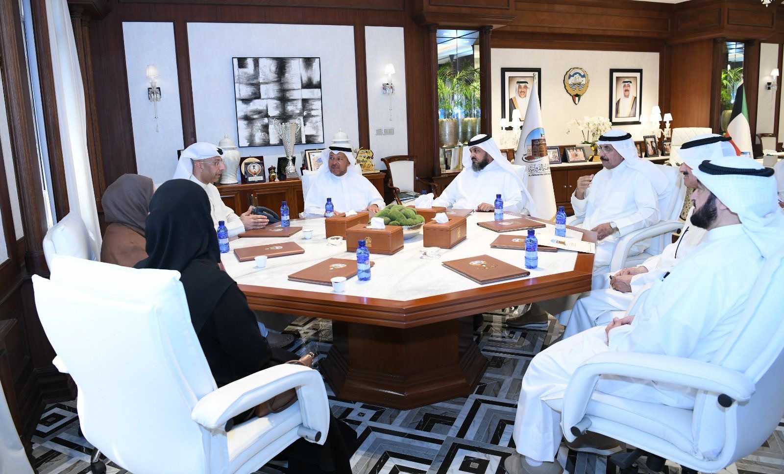 استقبل معالي محافظ الفروانية الشيخ عذبي ناصر العذبي الصباح اليوم صباحًا في مكتبه بمحافظة الفروانية مدير منطقة الفروانية التعليمية السيد جاسم بوحمد، ومدير الصيانة وعضو مجلس محافظة الفروانية ممثل وزارة التربية م. جمال العيبان، وم.فاطمة عبد اللّٰه الصامل مسؤول المكتب الفني، والسيدة فاطمة فيصل الكندري رئيس قسم التخطيط ، بحضور السيد سعد الهدبة والسيد علي عبدالهادي الشنفا أعضاء مجلس محافظة الفروانية وذلك لبحث المستجدات المتعلقة بالاستعدادات لإنطلاق العام الدراسي الجديد