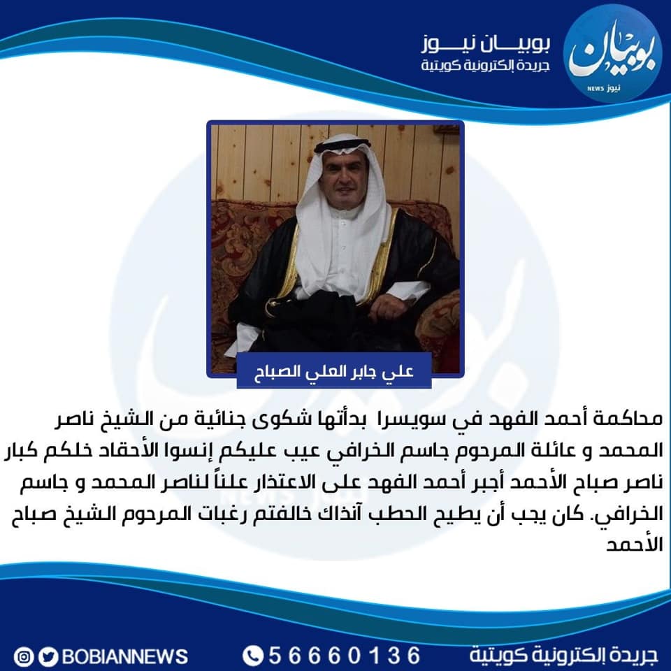 محاكمة أحمد الفهد في سويسرا بدأتها شكوى جنائية من الشيخ ناصر المحمد و عائلة المرحوم جاسم الخرافي