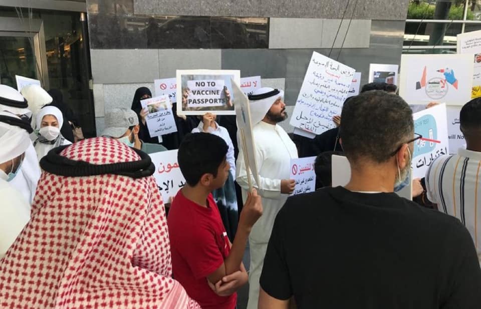 عاجـل – معلمون يعتصمون أمام مبنى وزارة_التربية رفضاً للاشتراطات الصحية «المسحة الأسبوعية أو التطعيم