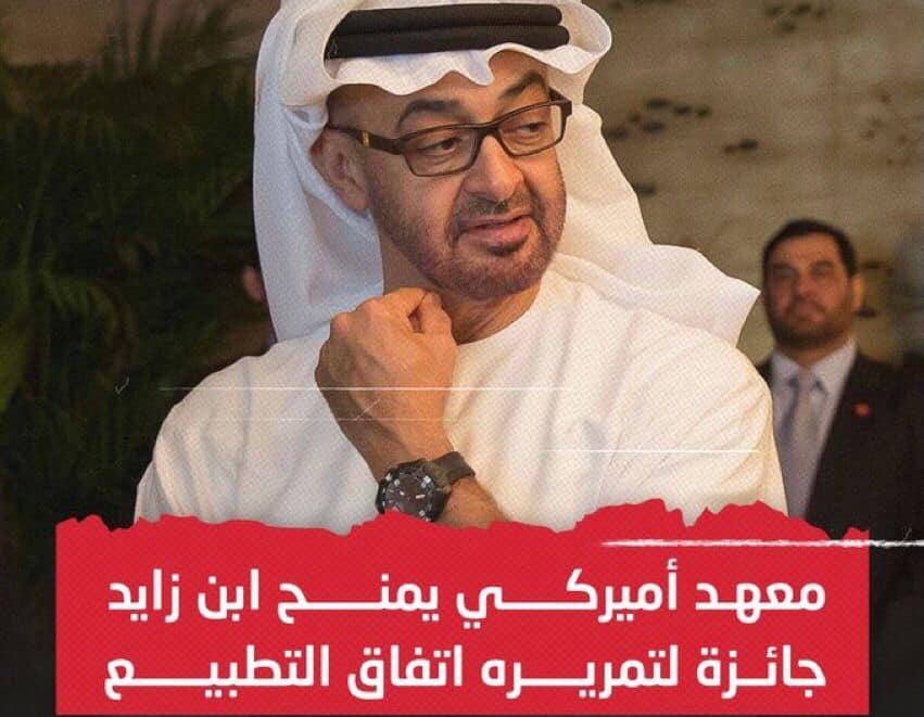 لجهوده في إبرام اتفاق التطبيع بين الإمارات ودولة الاحتلال الإسرائيلي العام الماضي