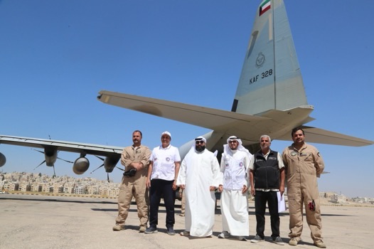 وتأتي هذه الطائرة ضمن الحملة الانسانية (الكويت بجانبكم) وبتنظيم من جمعية الهلال الأحمر الكويتي بالتعاون مع وزارات الخارجية والدفاع والشؤون.
